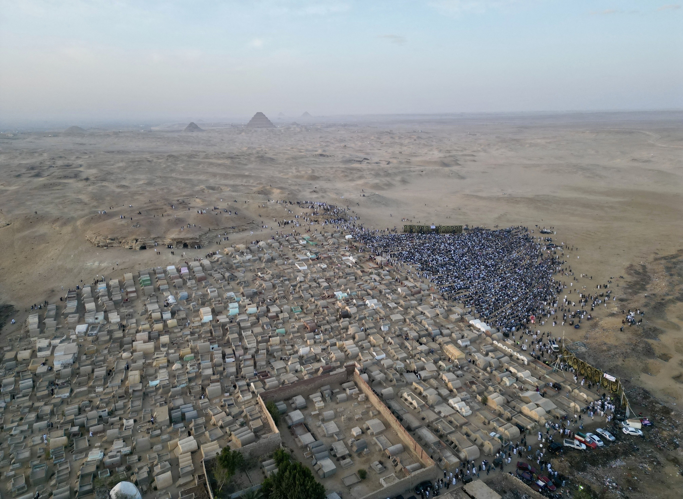 埃及吉萨阿布西尔金字塔群周边城镇的穆斯林参加「开斋节」(Eid al-Fitr)祷告。3月20日,全球穆斯林迎来开斋节,标志着斋月正式结束,穆斯林在开斋节晨祷后可恢复正常饮食。伊斯兰教是埃及第一大宗教及国教,穆斯林占总人口比例达90%。埃及政府公布数据显示2026财年第2季度 GDP 增速达到5.3%,创下近4年来最高水平,预计全年经济增长将达到5.2%,主要受到非石油部门出口额增长推动。摄影师:Fareed Kotb