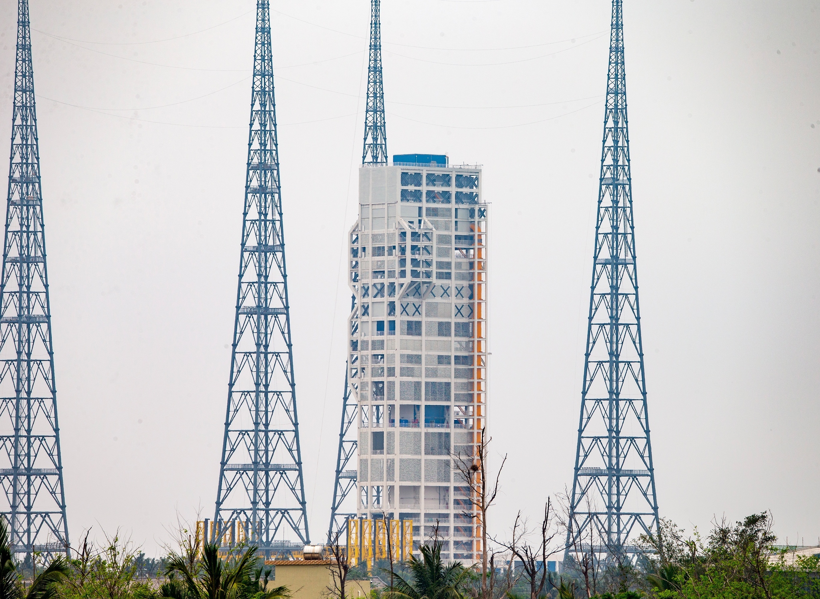 中国「长征十号」运载火箭专用的301发射工位正在建设中,海南文昌航天发射场。这是中国载人登月任务的首个专用发射工位,主要设计用于发射长征十号系列火箭及梦舟载人飞船,发射塔架高约120米,配备单面双流道气动外形导流槽、喷淋系统、四级防腐避雷塔、智能化测发控系统等。该项目于2024年4月开工建设,目前逃逸塔总装测试厂房、火箭导流槽及避雷塔已完工,发射塔架、测试厂房及配套设施进入设备安装阶段,工位整体建设进度达到90%,预计2026年下半年完成所有建设。摄影师:iDaily Media