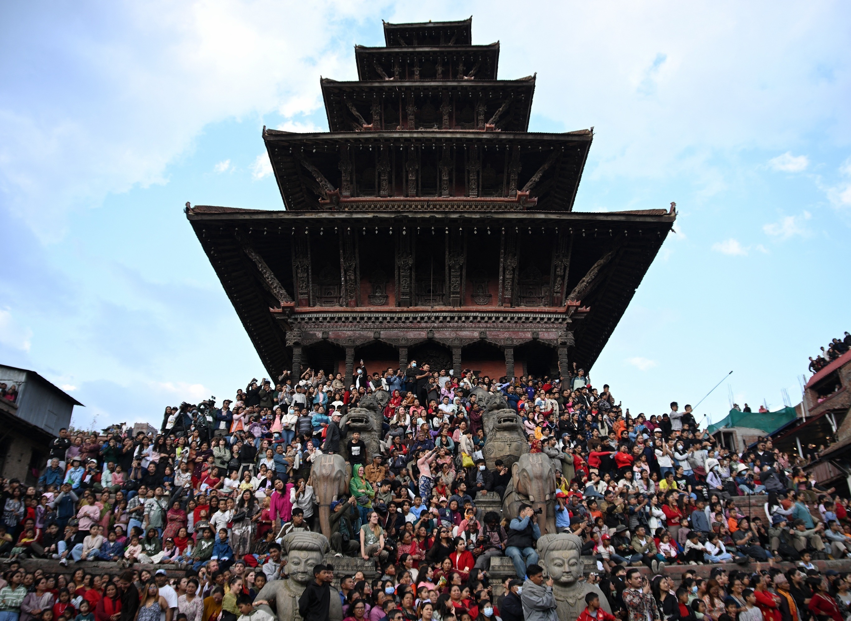 尼泊尔民众庆祝传统新年「毕斯基节」(Bisket Jatra),加德满都王宫广场。4月10日,尼泊尔迎来传统新年「毕斯基节」,这一节日的历史可追溯至公元5世纪尼波罗国时期,旨在庆祝春天的降临,按照传统当地民众会举行战车巡游、拔河比赛等庆祝活动。亚洲开发银行(ADB)最新报告预测尼泊尔2026财年 GDP 增长率将放缓至2.7%,比2025年下降1.9个百分点,主要受到国内政治动荡、中东冲突局势和气候灾害等负面因素影响。摄影师:Prakash Mathema