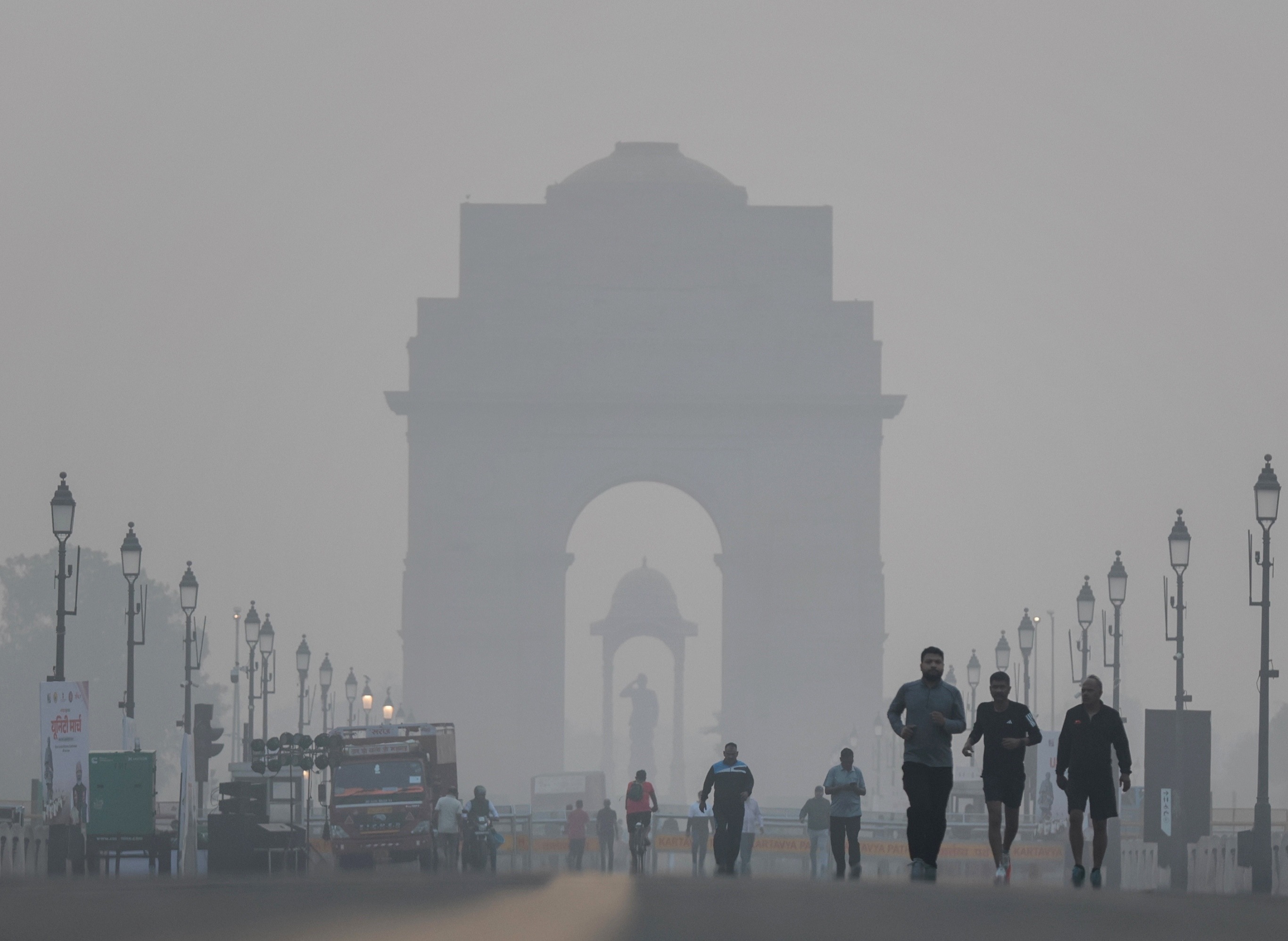 新德里市民在雾霾中晨跑。11月1日,印度首都新德里空气质量指数(AQI)上升至233,连续3天录得「极差」水平。印度本轮空气污染主要受到排灯节烟花燃放、汽车尾气排放和不利天气因素影响。印度空气质量管理委员会宣布自11月1日起禁止非本地注册的高排量货车进入新德里市区,预计将影响5万至7万辆货运车辆。新德里市政府计划在未来数周通过人工降雨方式改善空气质量。摄影师:Rajat Gupta